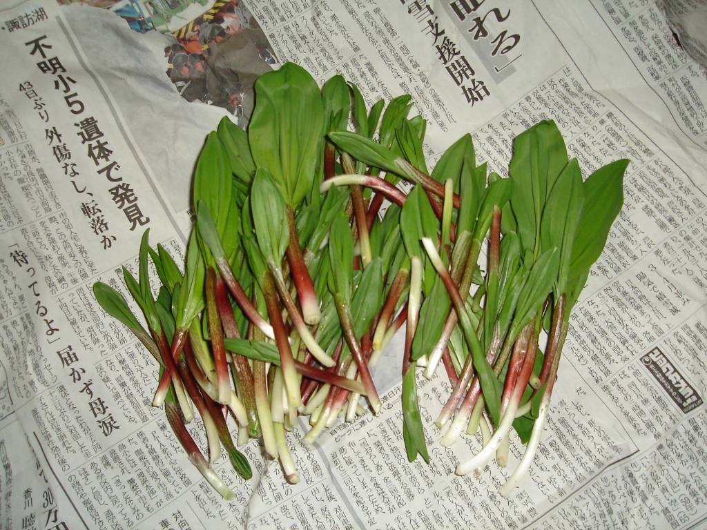 物は出ているが細い。採っていると、おじさんが一人やってきた。まだ細いねなど声をかけられる。気まずい空気が流れる。一握りほど採取して終了。さて、今夜は何にしようか。