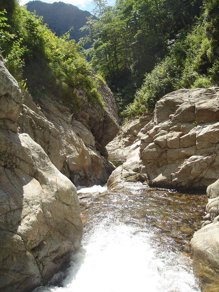一度泳いだら二度泳ぐのも同じなので、その後は適当に水に浸かりながら下る。岩盤と淵のゴルジュはその後三ノ沢出合まで続いた。