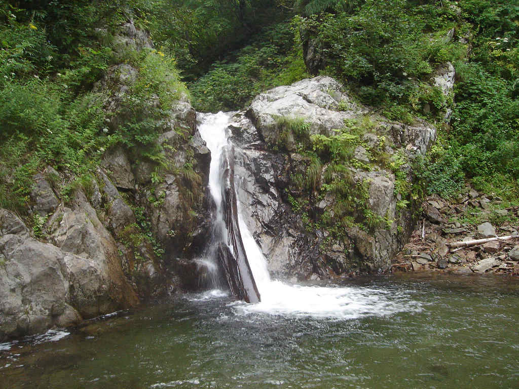 天場を出てすぐの瀞に、カジカがいた。あ、やっぱりいたんだ・・・。沢はすぐにゴルジュの様相となる。狭い廊下の突き当たりにの右岸から、早速大きな滝が落ちてくるのが見える。右岸側面を特に問題なく直登する。大きな釜を持った幅広の滝が続く。左岸をへつって軽く越えようとしたら、スリップしていきなり釜の中にどぼんしてしまった。朝からちょっとぼんやりしていたが、一気に気合いが入る。むちゃくちゃ寒いが、核心部で落ちるより、こういうところで落ちて置いた方が気が引き締まる。・・・と言うことでよしとしよう。