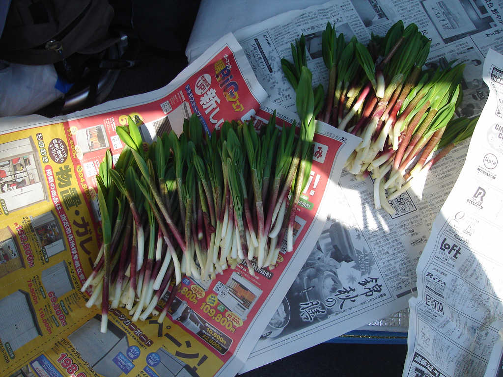 一番奥の畑で、食べ頃のギョウジャニンニクを 500g ほど採取した。
