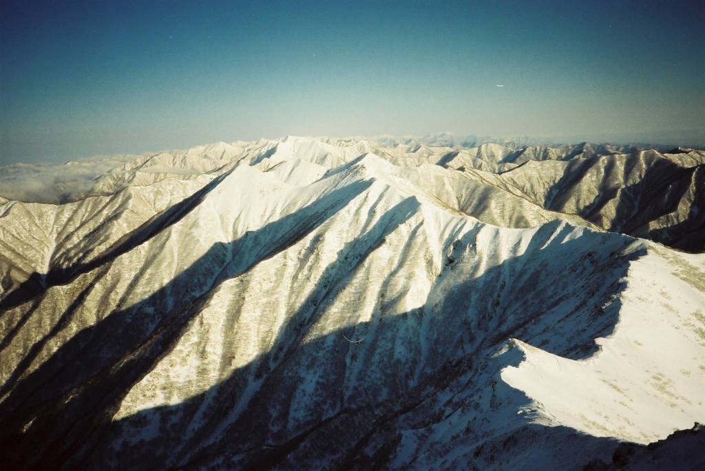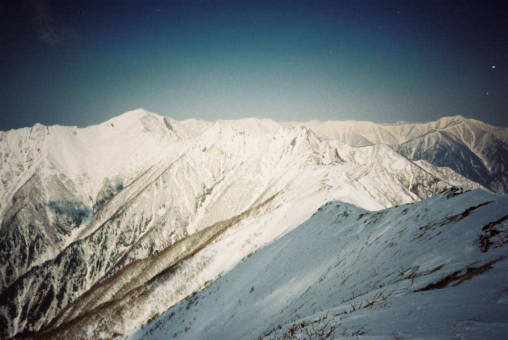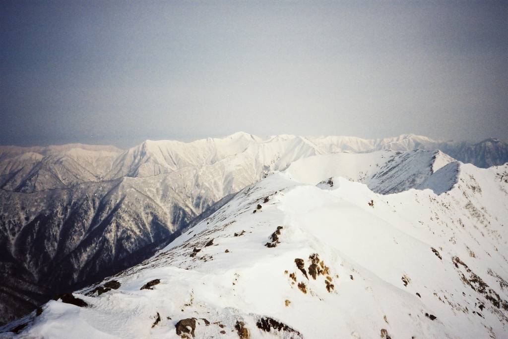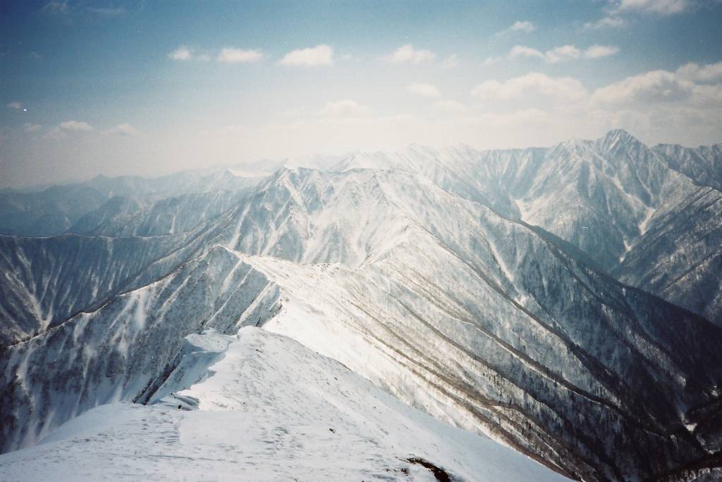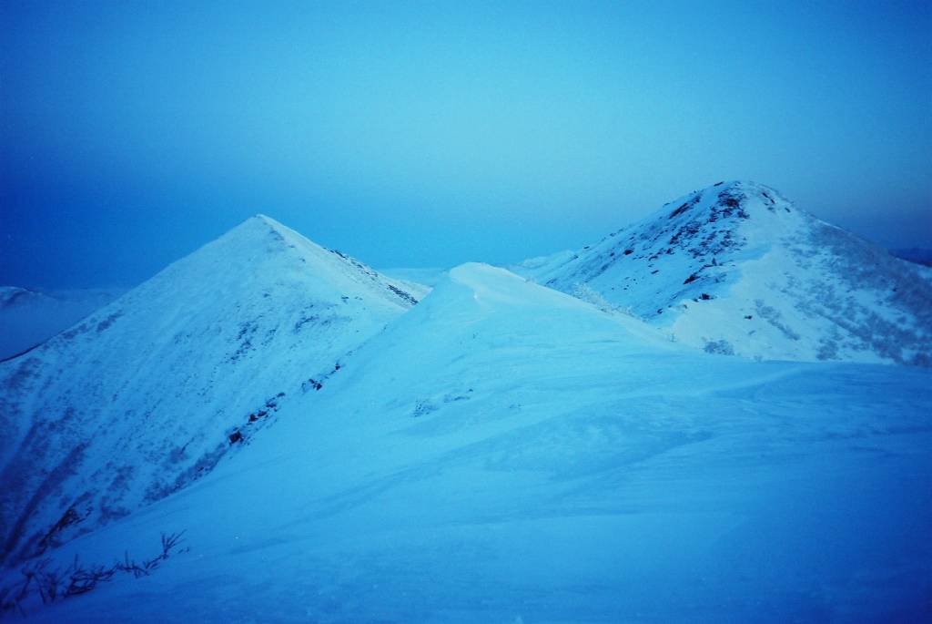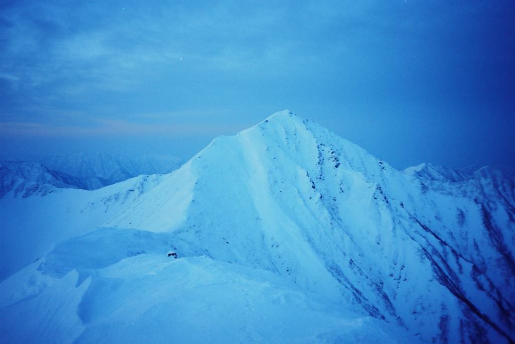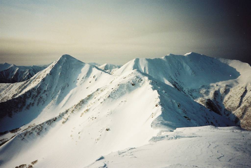 日高の全山縦走をするなら、前からこの季節だと思っていた。この季節なら硬く締まった雪稜の日高を駆け抜ける事が出来る。支稜にはいっさい目もくれず、夜明け前から行動を開始し、できる限り距離を稼ぎ、とにかく進める所まで進もうというマラソン山行であった。