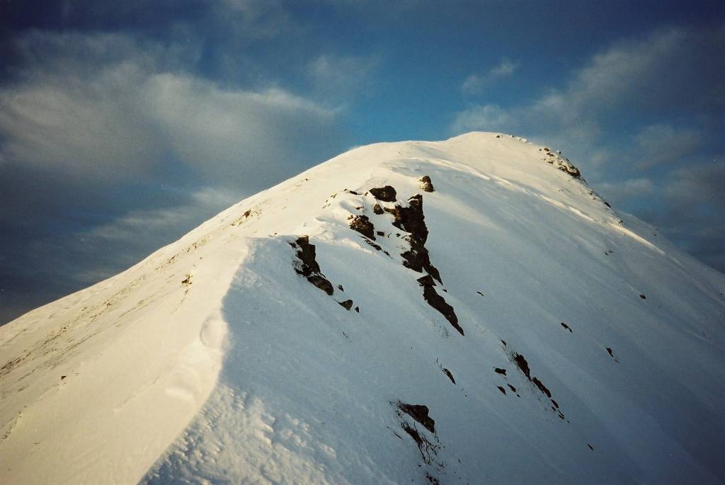 コルからピリカヌプリへの登りで風がますます強くなる。横風にあおられ、立っていることもままならず、体が風下へと流される。はうように斜面をよじ登り、ピークの陰でようやく一息つく。