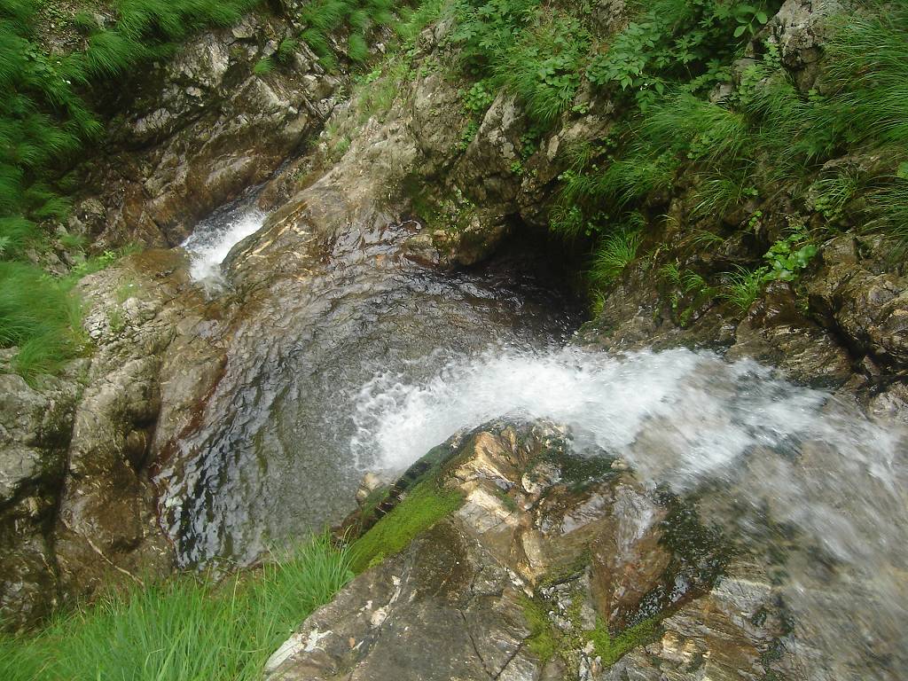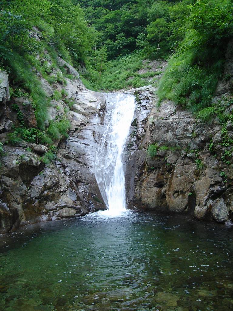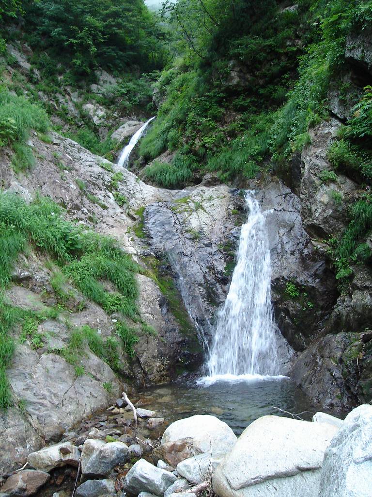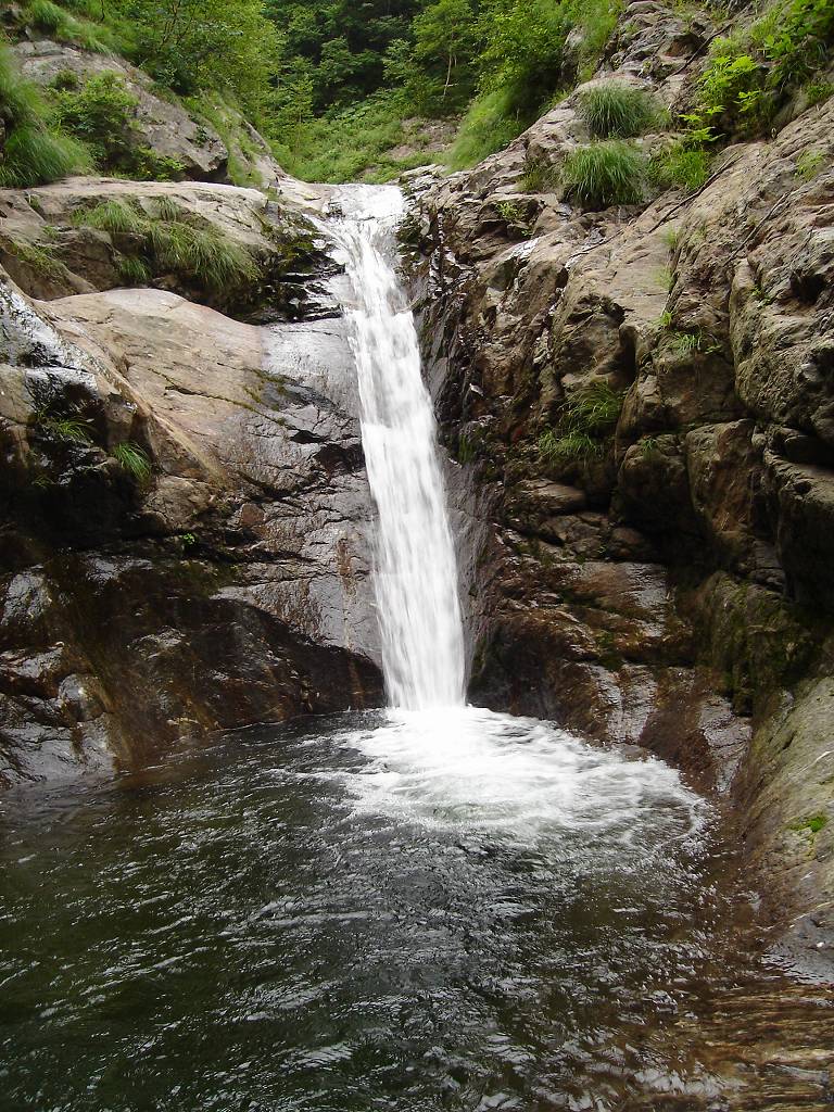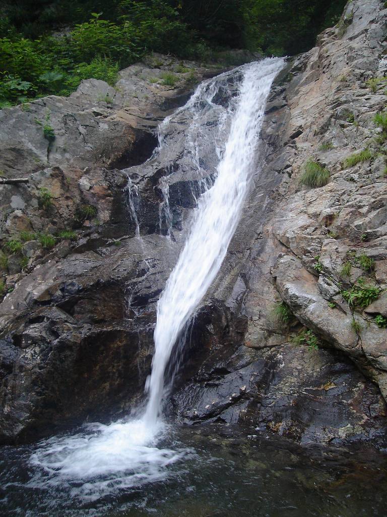 悩んだあげく、今日はアタック装備で行くことにする。空は曇り。どうもパッとしない。シュラフ等不要な装備をスタッフバッグに詰め、近くのダケカンバの枝にひっかけて出発。天場を出てもしばらくは河原が続く。 Co650 の右岸のルンゼを見てからようやく小滝が現れ始める。まずは序の口とも言える小滝を快調に直登していくと、 Co680 で両股の滝を見て徐々に険谷の片鱗を見せ始める。 Co690 の滝は左岸のバンドをつたって直登可能。この上部は真っ暗な函になって直登可能な滝がひとつかかっている。